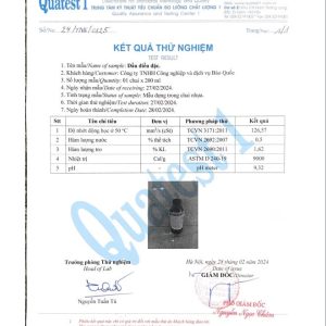 Dầu Điều Bazơ hóa – Bảo quốc ( Đo kiểm tại Quastest 1, Viện hóa học Công nghiệp Việt Nam, ảnh đi kèm)